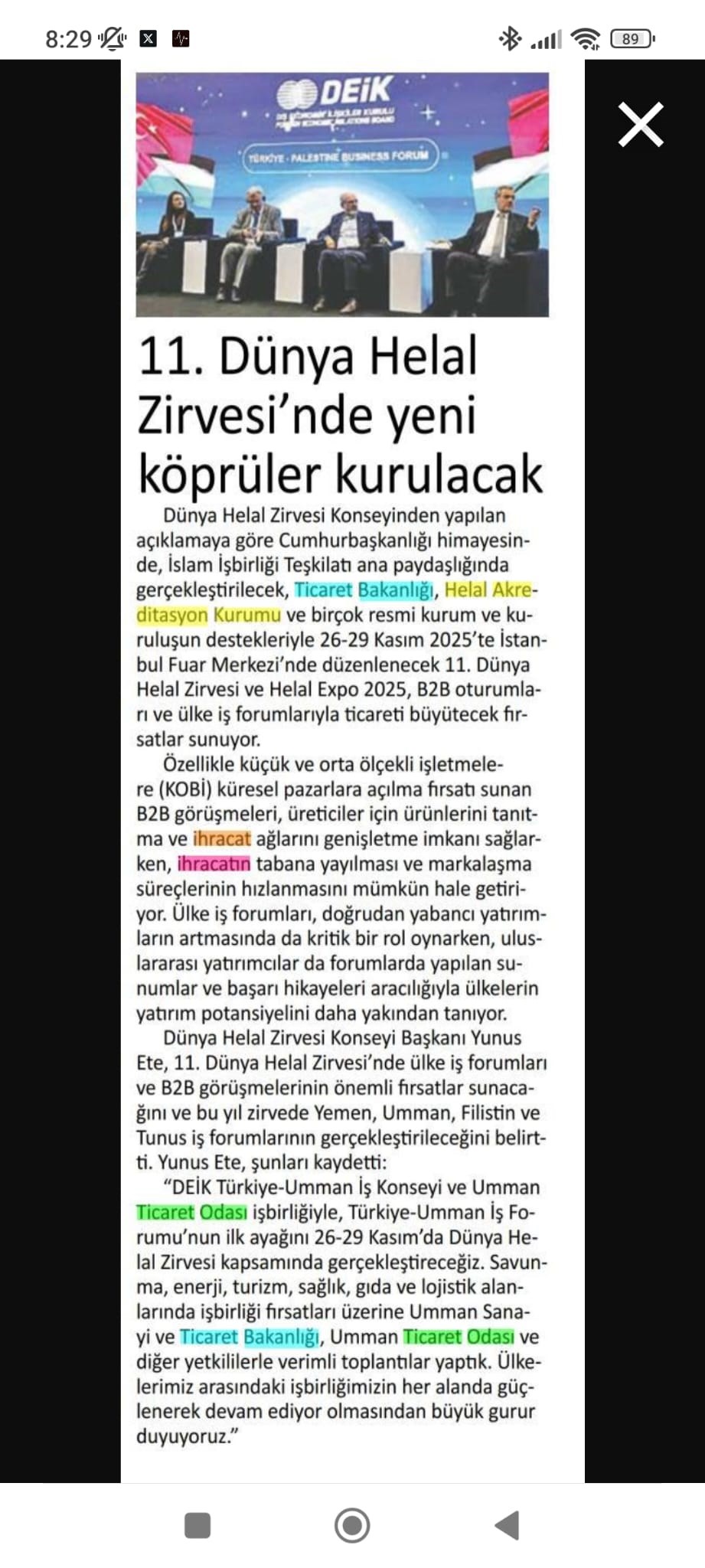 11. Dünya Helal Zirvesi'nde yeni köprüler kurulacak (Yeni Akit, 29 Ekim 2025)